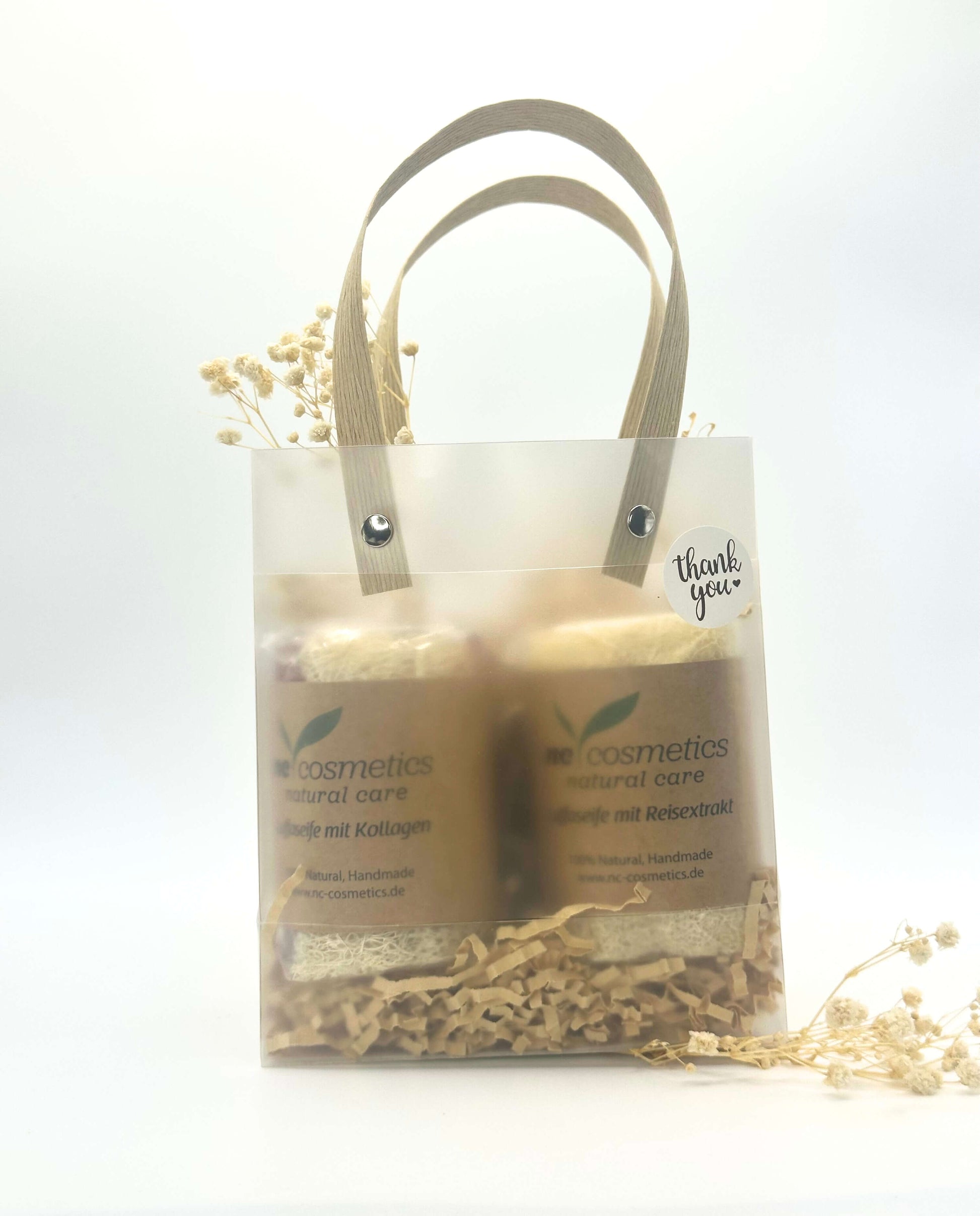 Unsere exklusive Geschenkbox bietet Ihnen die Möglichkeit, zwei Ihrer Lieblings Luffa-Seifen, 2 Ihrer Lieblings Clay-Masken oder aber jeweils eine Luffa-Seife und eine Clay-Maske individuell auszuwählen und zusammenzustellen.